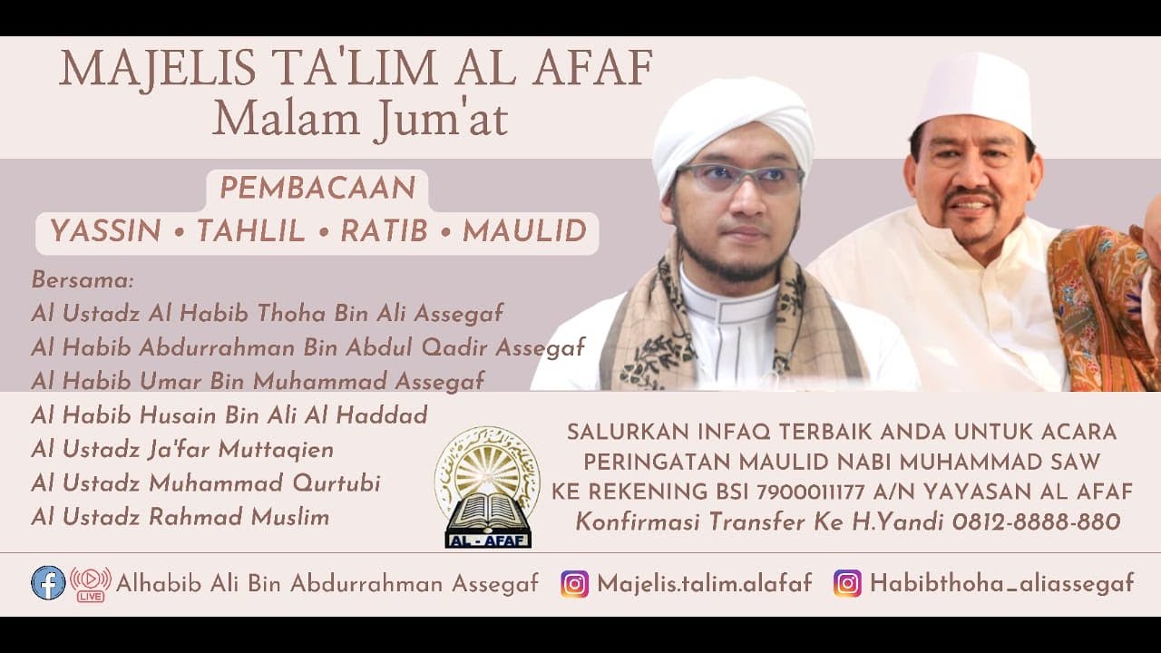 🔴 LIVE : MAJELIS AL AFAF MALAM JUMAT | PEMBACAAN YASSIN, TAHLIL, RATIB & MAULID NABI MUHAMMAD SAW
